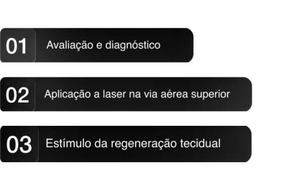 O que fazemos é diminuir os sintomas tanto do ronco e apneia através da “Fortificação”do palato mole pela indução de colágeno e contração do tecido. Em média, é necessário uma sessão de “reforço" uma vez ao ano.